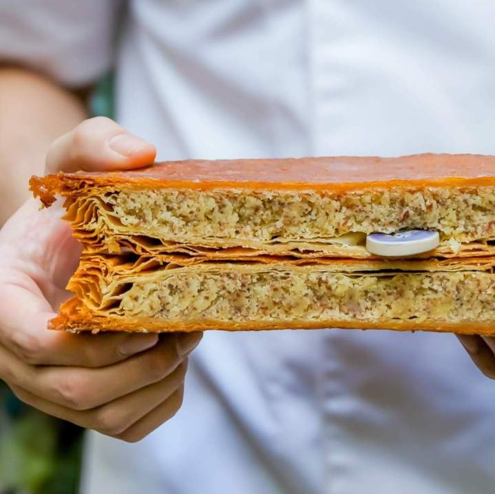 coeur de praliné coulant et croustillant,